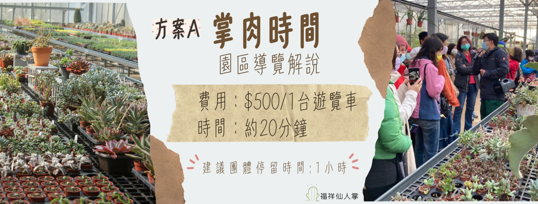 純導覽,一團/一台遊覽車收費$500 (清潔費),導覽時間約20分鐘介紹園區內多肉植物及相關小知識